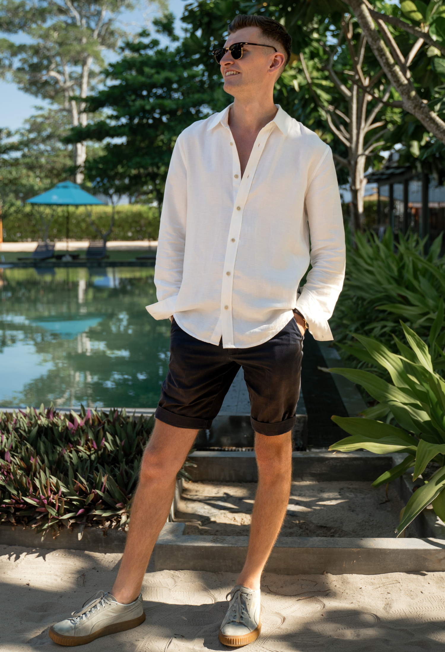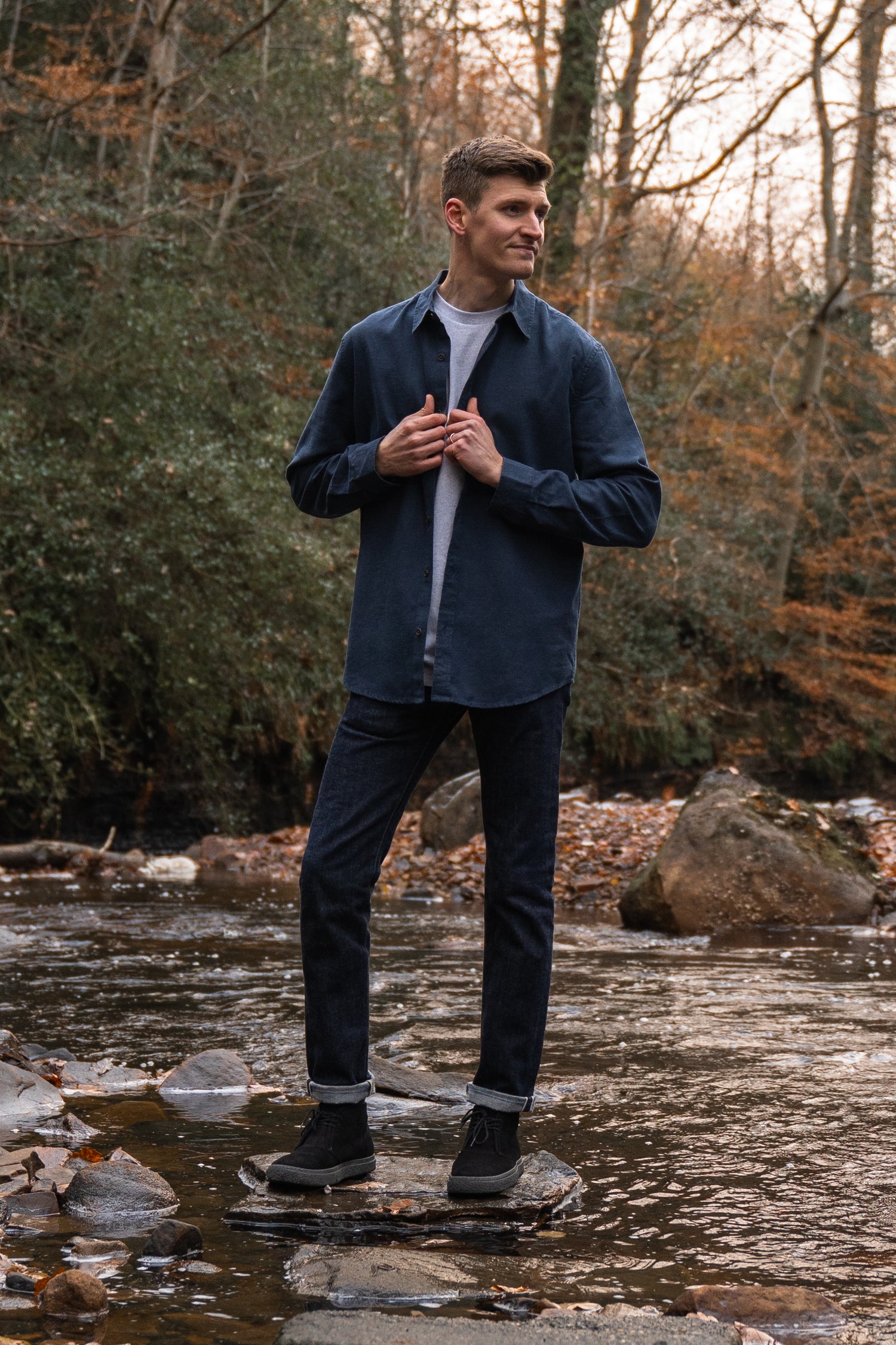 Our bespoke blend of lyocell (non-branded Tencel) and hemp, and designed by co-owner David, was created to maximise the best of both of these natural biodegradable yarns. The hemp brings a linen feel to the shirt, whilst the lyocell makes it super soft and gives it an luxurious drape. Woven in a twill this fabric is perfect for both smart and casual looks. It’s slightly heavier weight than the 100% Tencel, however, the lyocell makes it just as breathable, making it a very dynamic fabric.