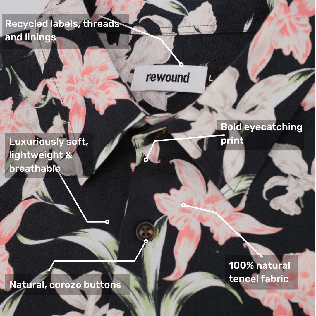 The Remi Orchid Print Shirt is crafted from 100% natural Tencel, merging a unique orchid pattern with a tailored yet relaxed fit. With its understated charm and lightweight fabric, this shirt is perfect for warm days when you want to look good with minimal effort. An eco-friendly essential, it’s designed for the man who values both style and sustainability in every piece he owns.