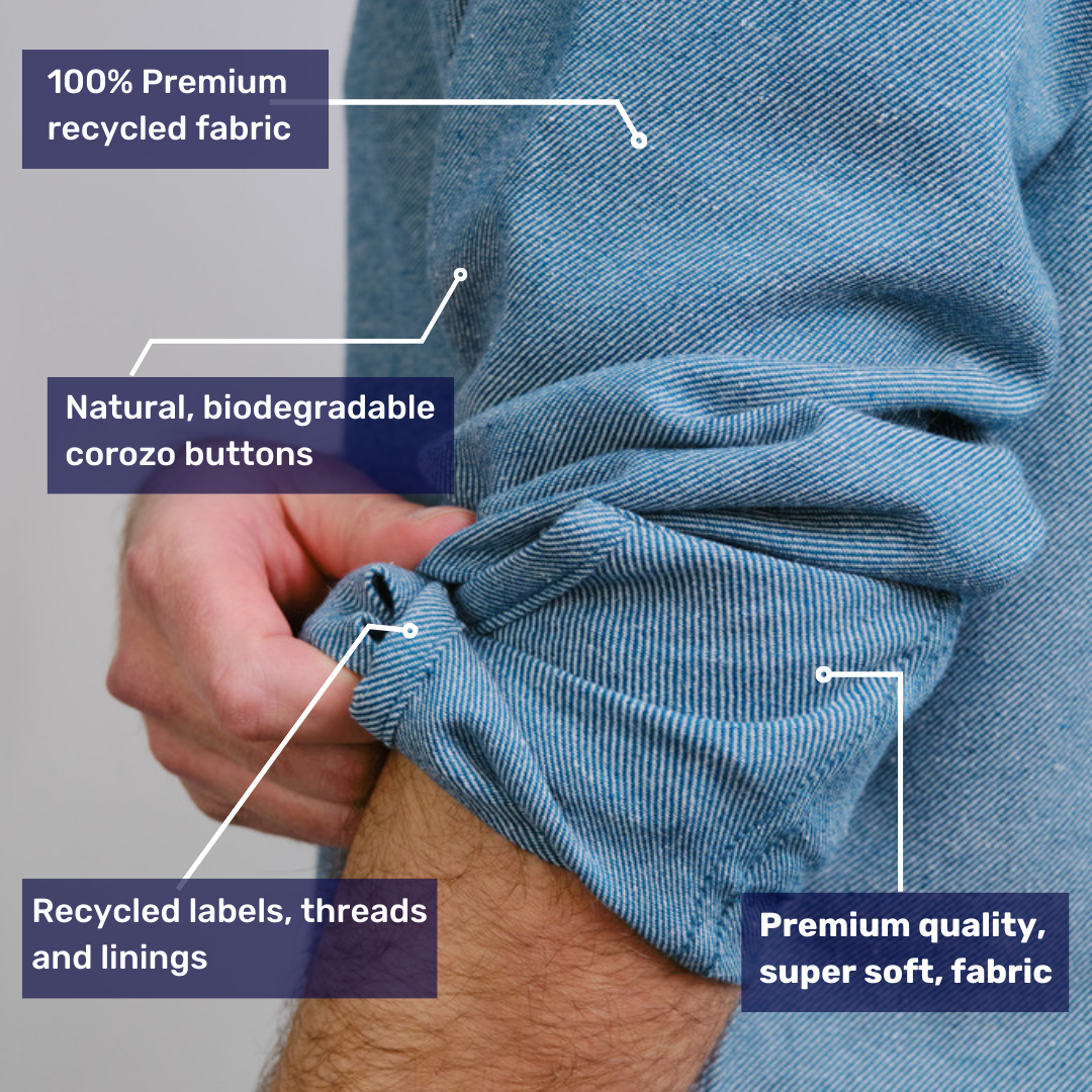 Biodegradable buttons, sustainable linings and recycled labels are featured on all our shirts, bringing you sustainable fashion at the highest quality.